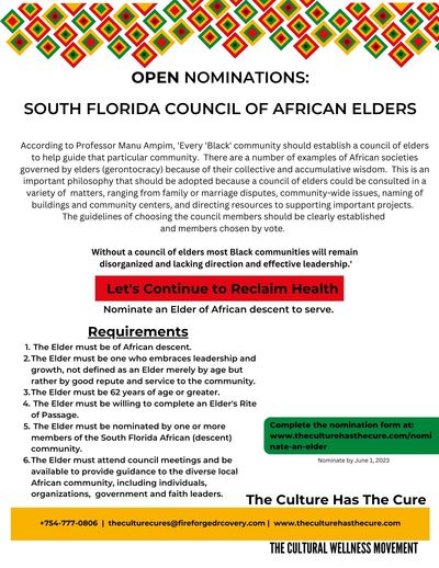 · The Elder must be nominated by one or more members of the South Florida African (descent) community.